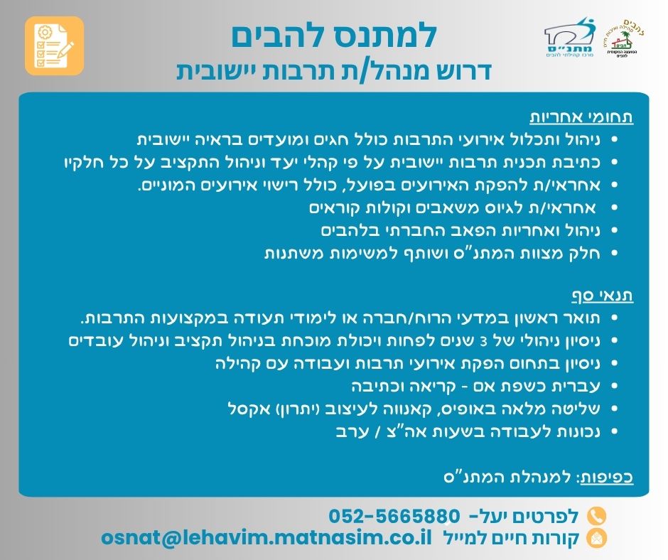 מתנ"ס להבים – אירועים ופעילויות 16.4.2026